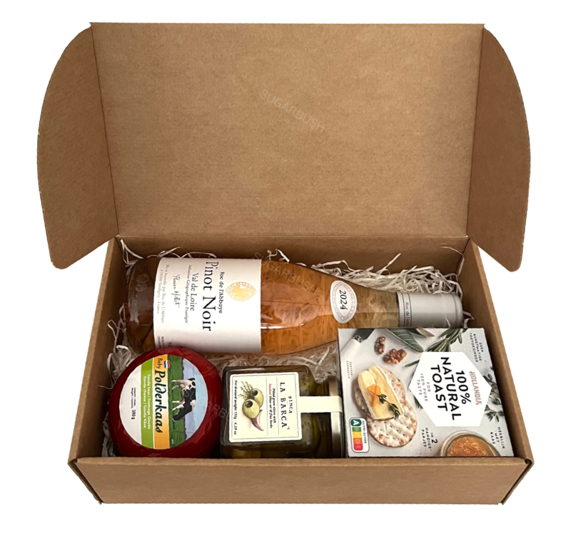 The gift comes wrapped in cellophane with ribbons and Christmas card with your personal message.